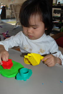 Here we are playing with Play-Doh again, this is the new interest. But she still likes her kitchen set too.